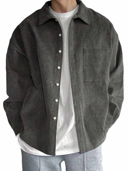 Men's Casual Fashion Pocket Corduroy Fabric Long Sleeve Shirt
