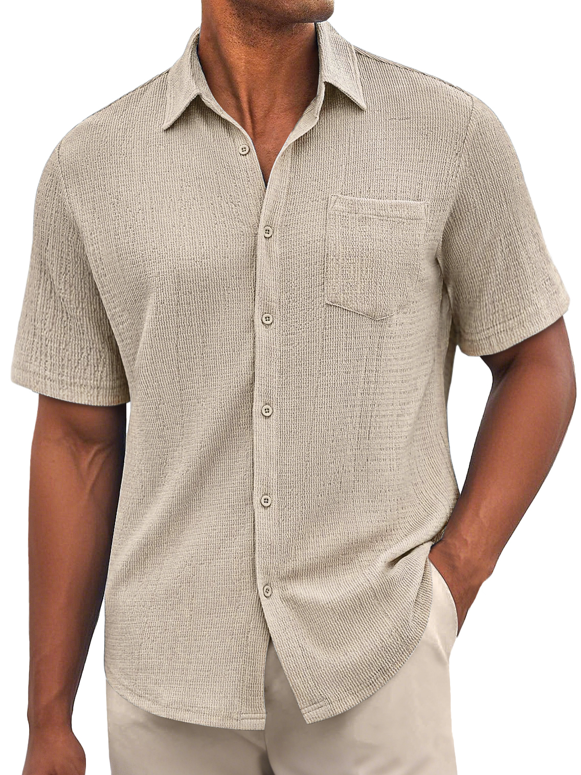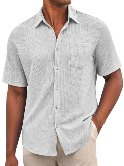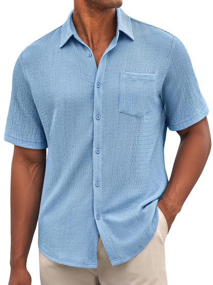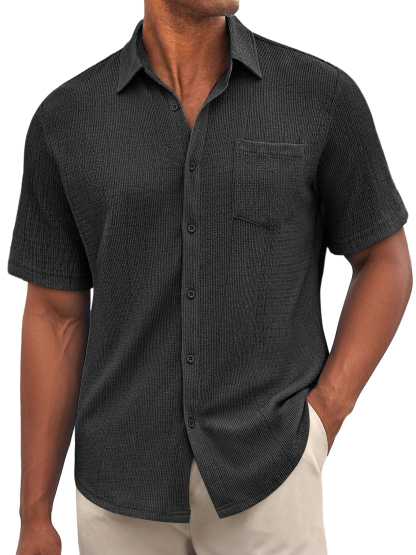 Men's Daily Bubble Wrinkle Casual Pocket Solid Color Short Sleeve Shirt
