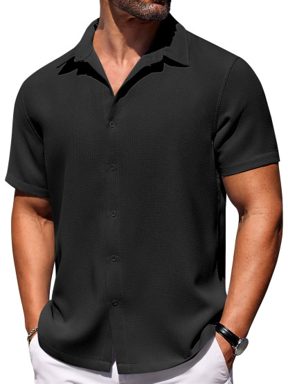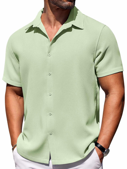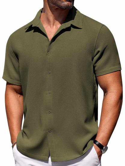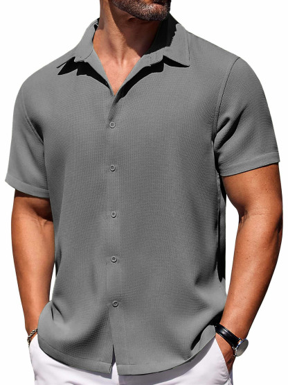 Men's Hawaiian Waffle Fabric Lapel Short Sleeve Shirt