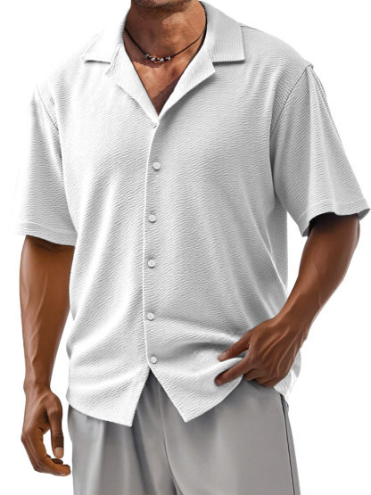 Men's Loose Solid Color Comfortable Texture Short-Sleeved Cuban Collar Shirt