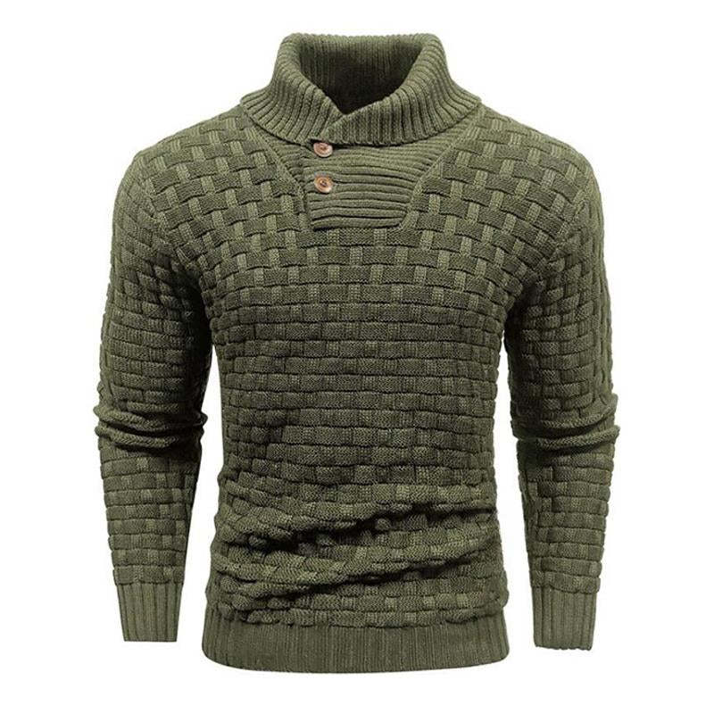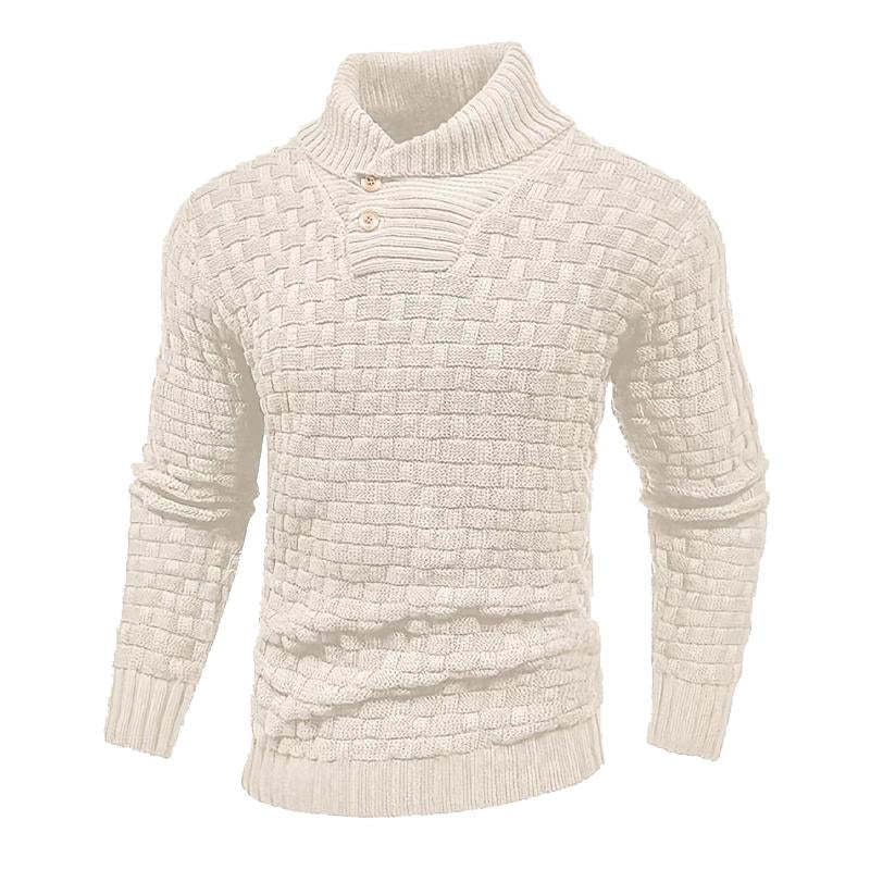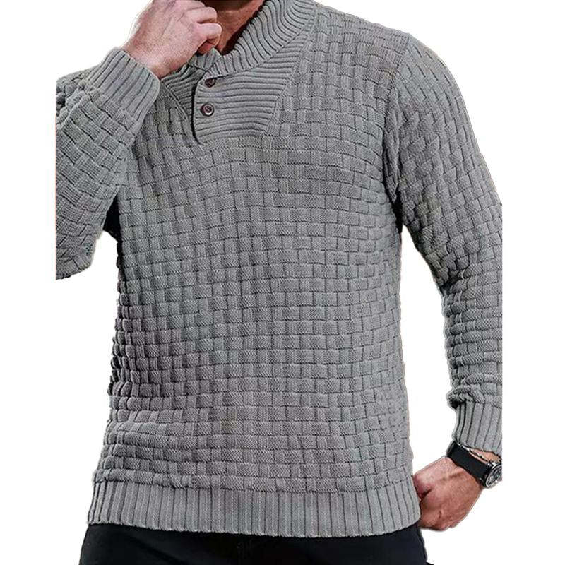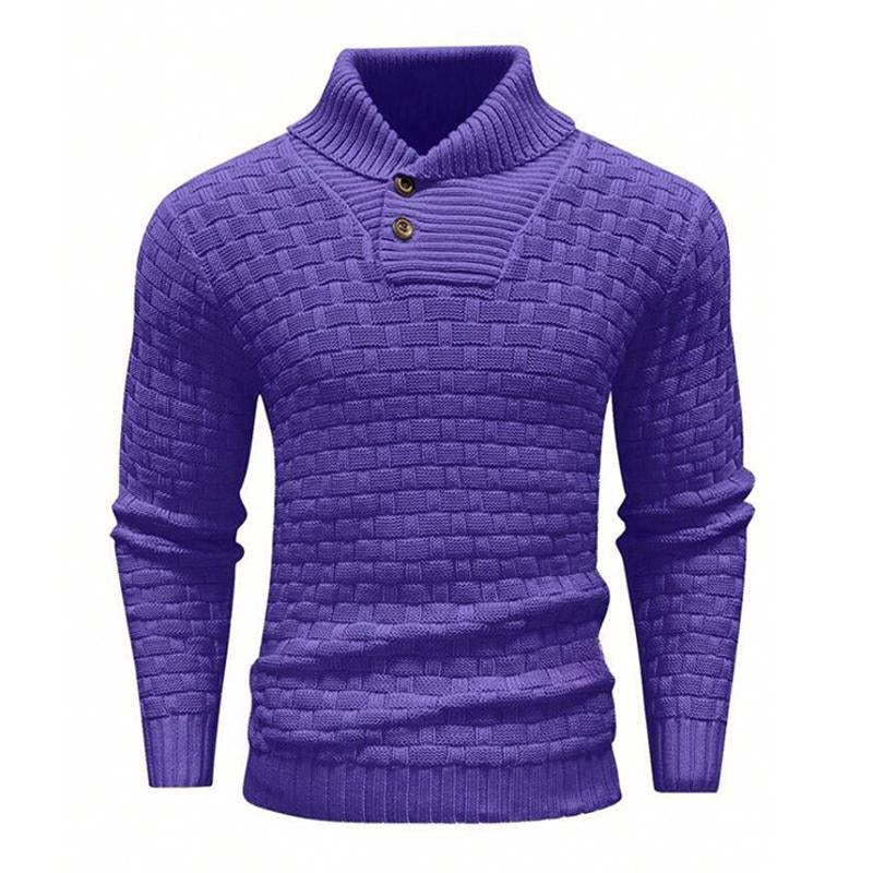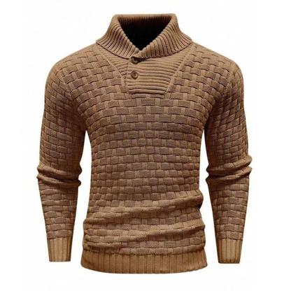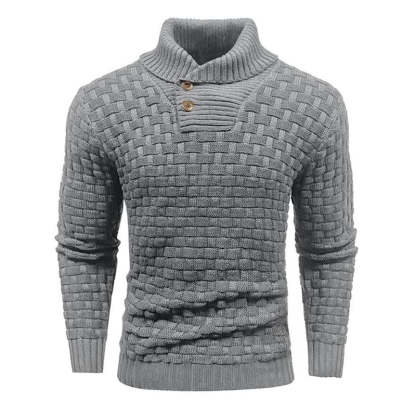 Men's Solid Color Round Neck Pullover Lapel Sweater