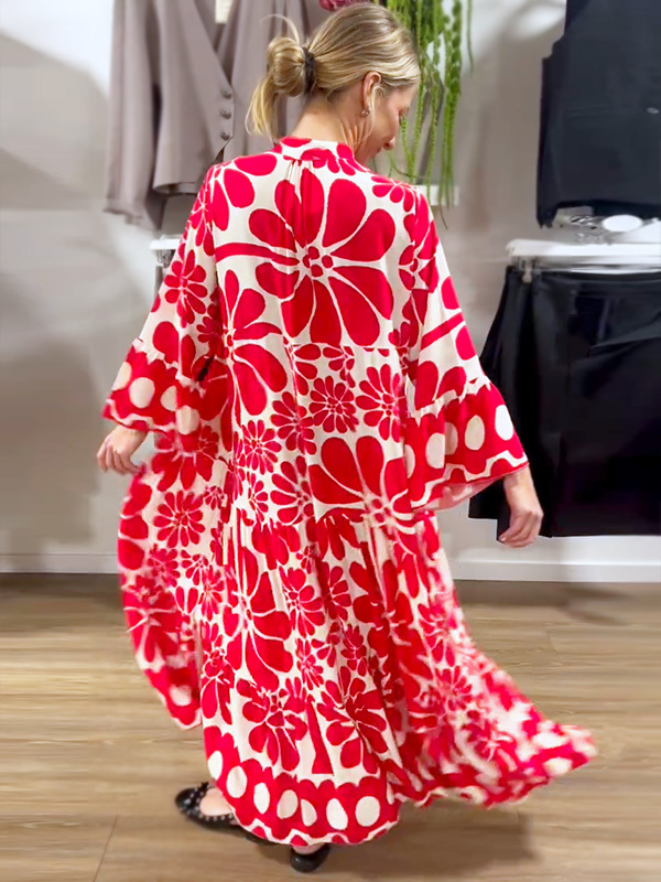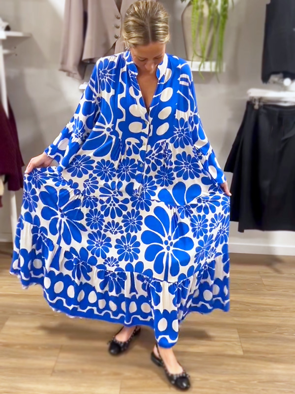 Introducing our V-Neck Button Printed Dress, designed for the modern woman who values sophistication and style. This dress features a stunning print and elegant maxi length, making it perfect for any occasion.